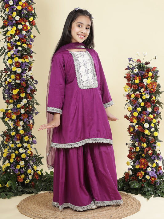 Zaina purple embroidered silk Kurti-gharara pants